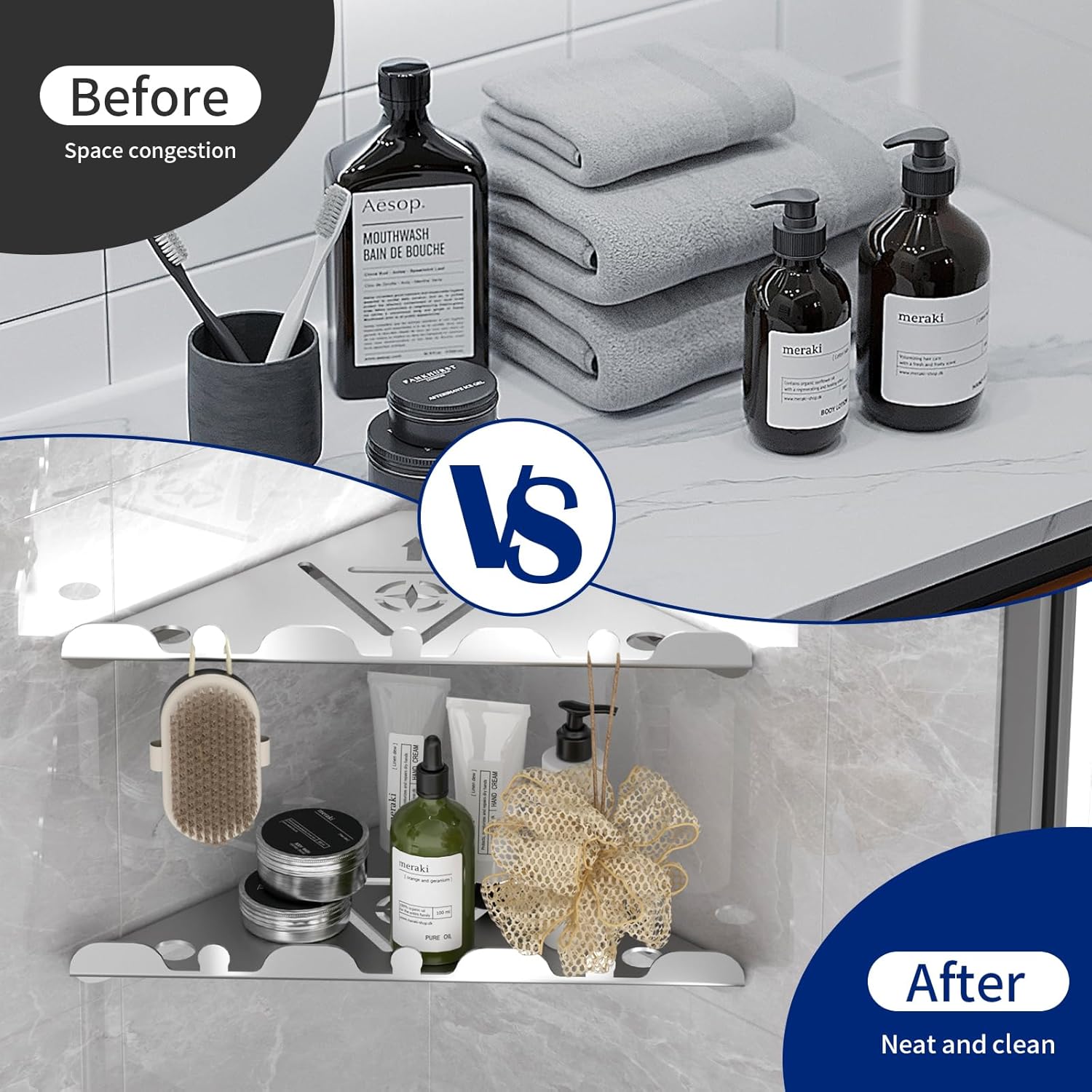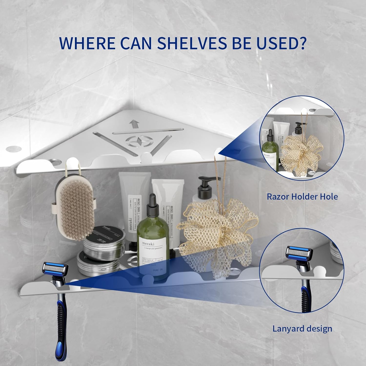 - Easy to Install & Clean: Our corner stainless steel shelf can be installed in minutes with screw. shower shelves for inside shower corner doesn't require any special maintenance or care. Clean corner shower shelf periodically using rag cleaning