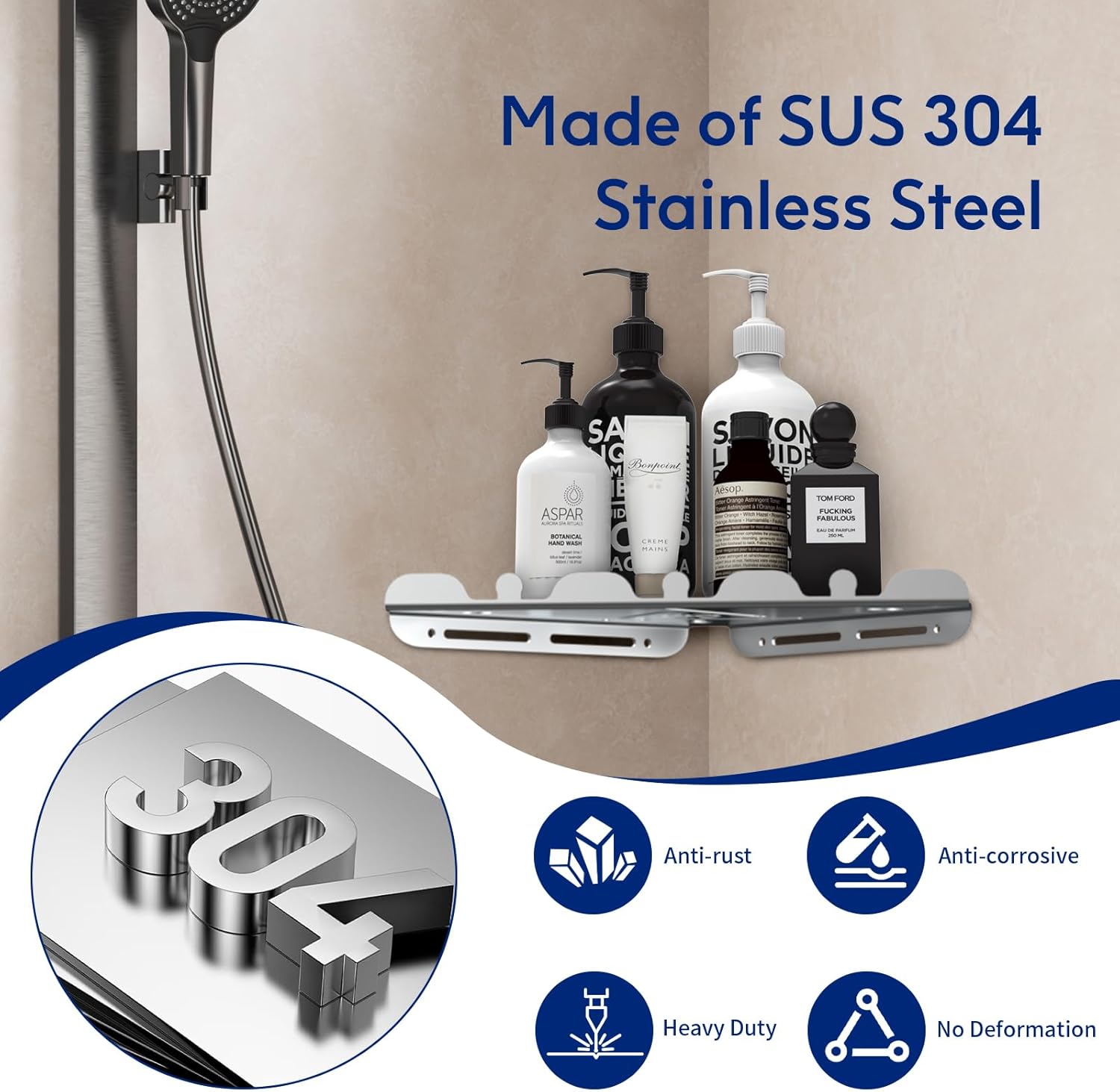 - SUS304 Stainless Steel: Our corner shower shelves are made of standard 304 stainless steel, which can protect against corrosion, scratches and rust for long-lasting durability. can hold up to 30 pounds per shelf. These shower corner shelves are suitable for use in wet shower environment