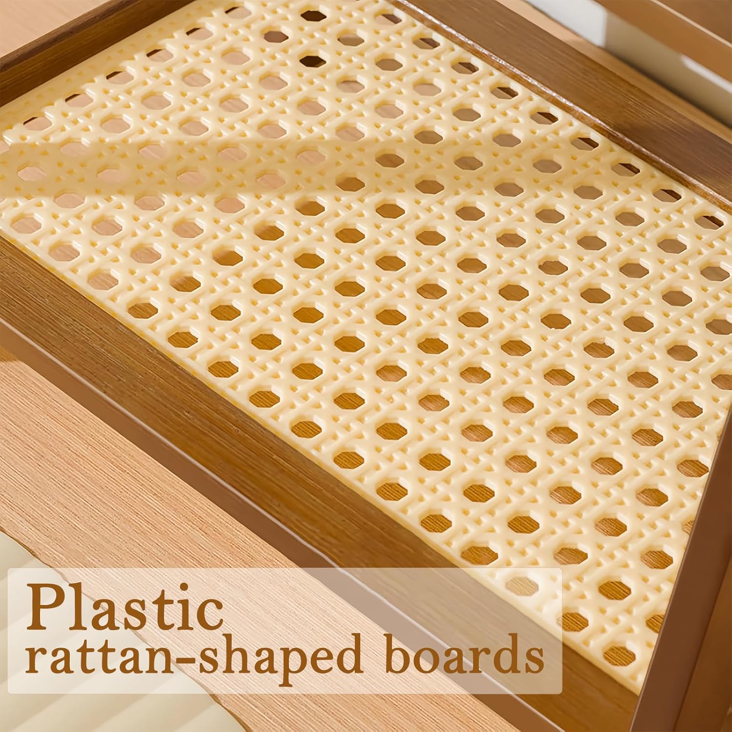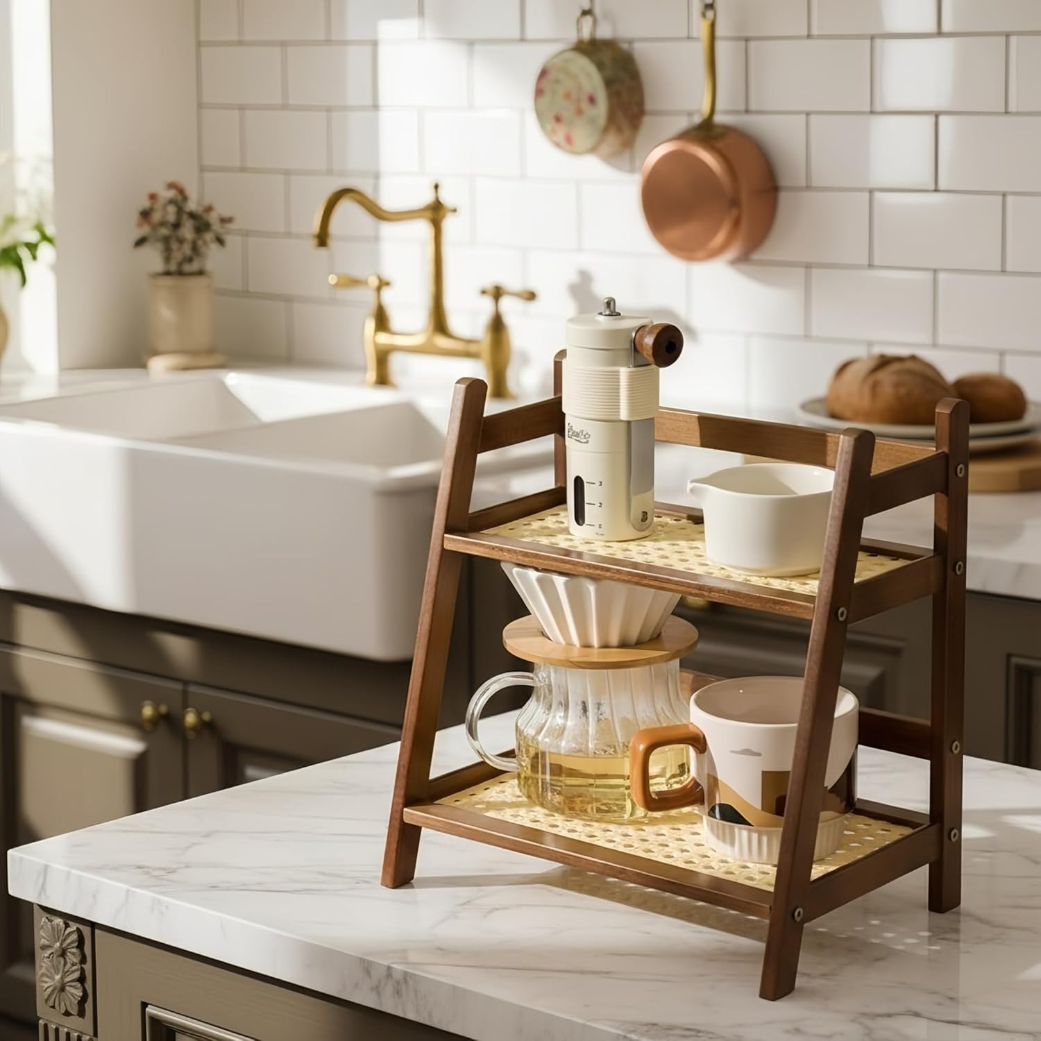 - Stylish Woven-Inspired Design: Crafted from durable ABS (plastic) with a textured rattan-like finish, this counter shelf blends rustic charm with modern practicality. Its warm, organic aesthetic elevates kitchen, coffee or tea bar effortlessly