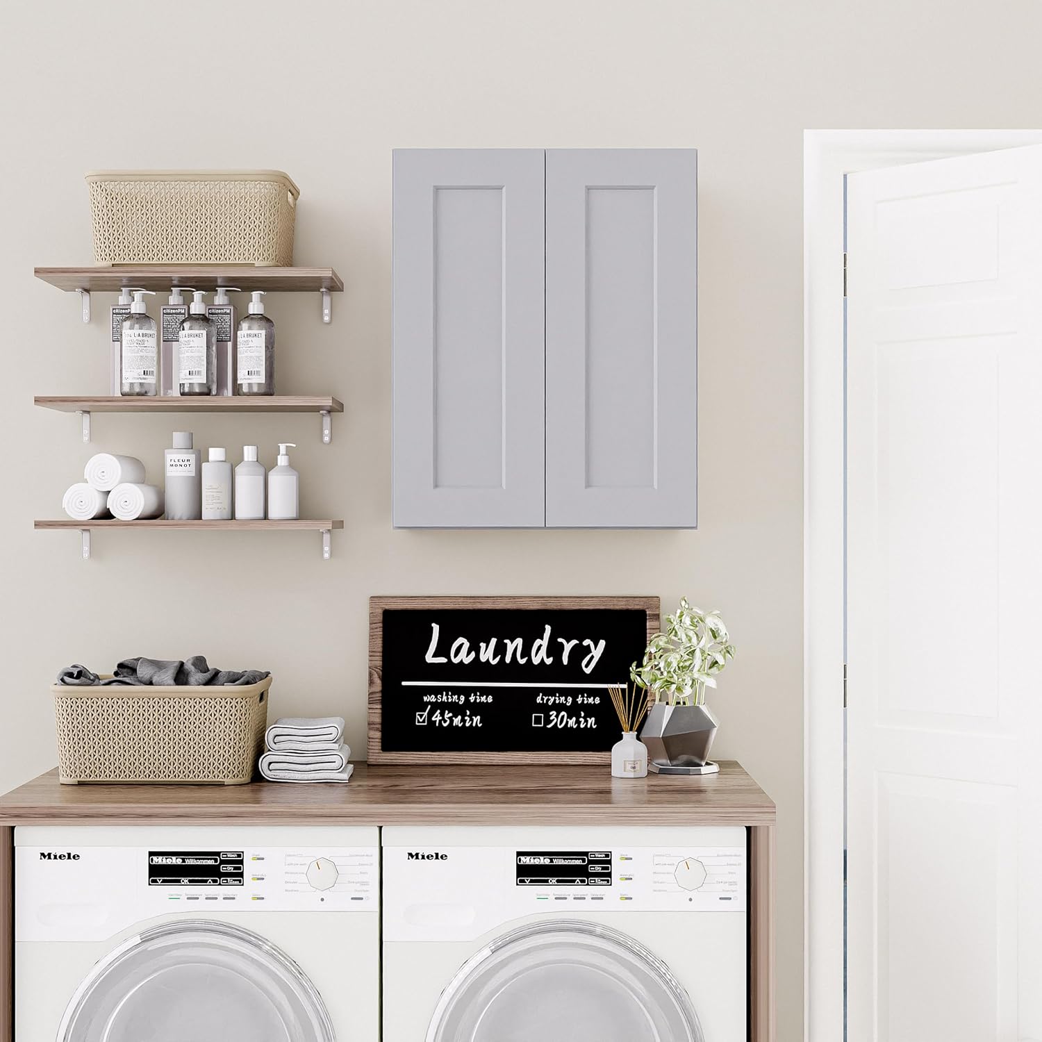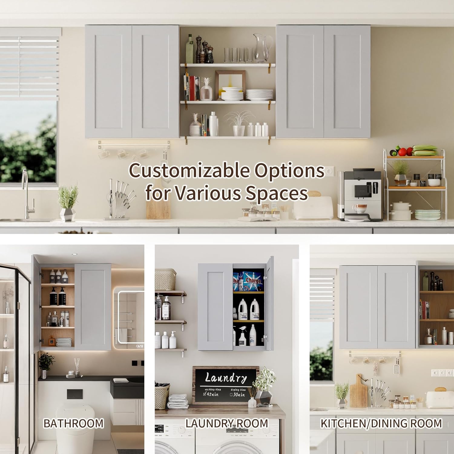 - 【STURDY AND HIGH QUALITY】Made up from solid wood and oil-based paint, the Laundry Room cabinet wall mounted is a sturdy wall hanging storage solution ensuring long-lasting reliability.