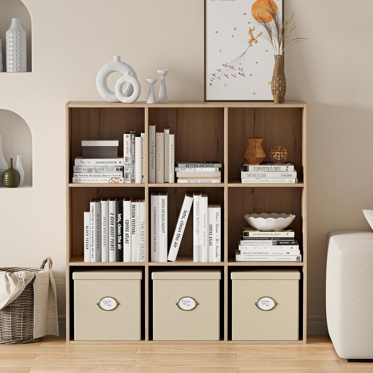 Wooden Storage Organizer with Closed Back Panel, 11in Cube Shelf Opening, Bookshelf, Display Shelf,Closet Cabinet for Home and Office (White Oak, 9-Cube 35.98L*9.45W*35.91H)