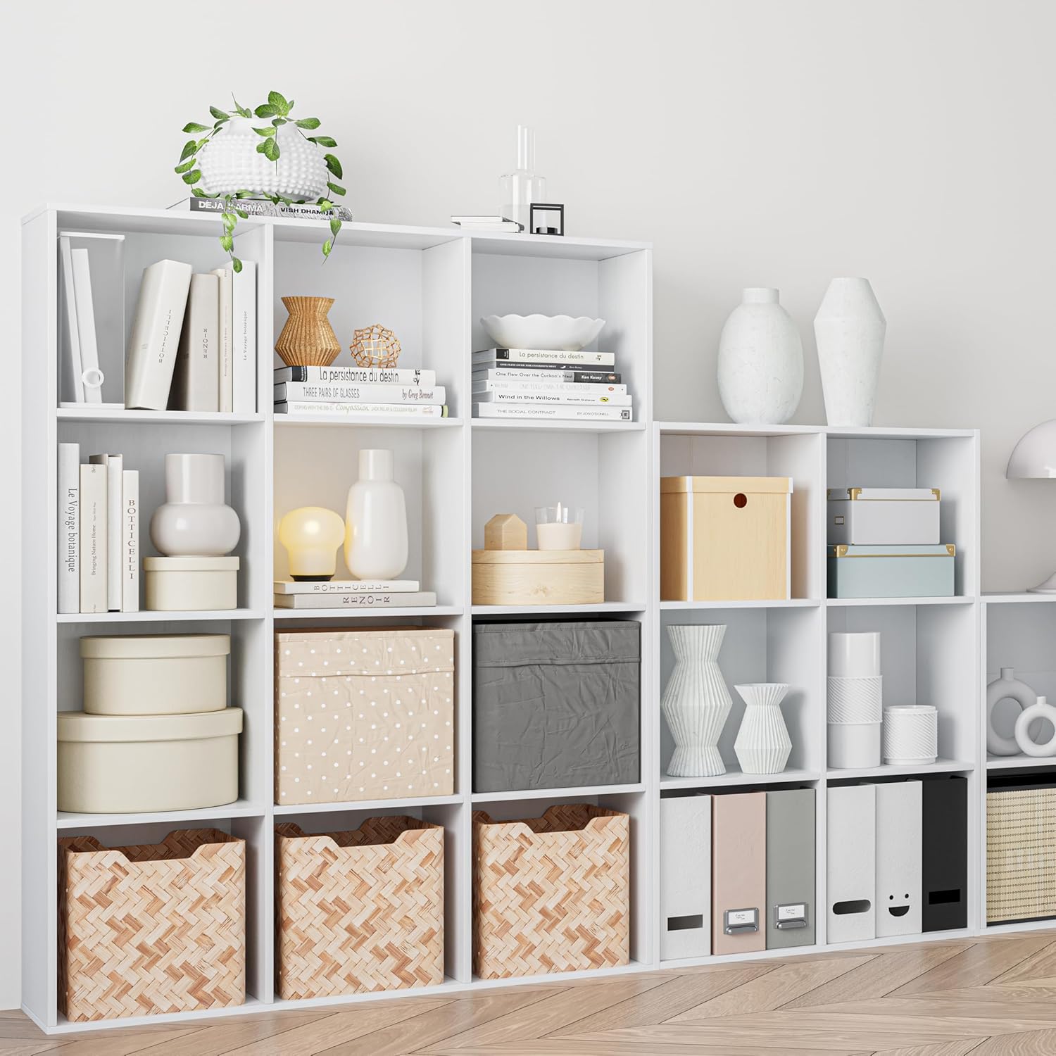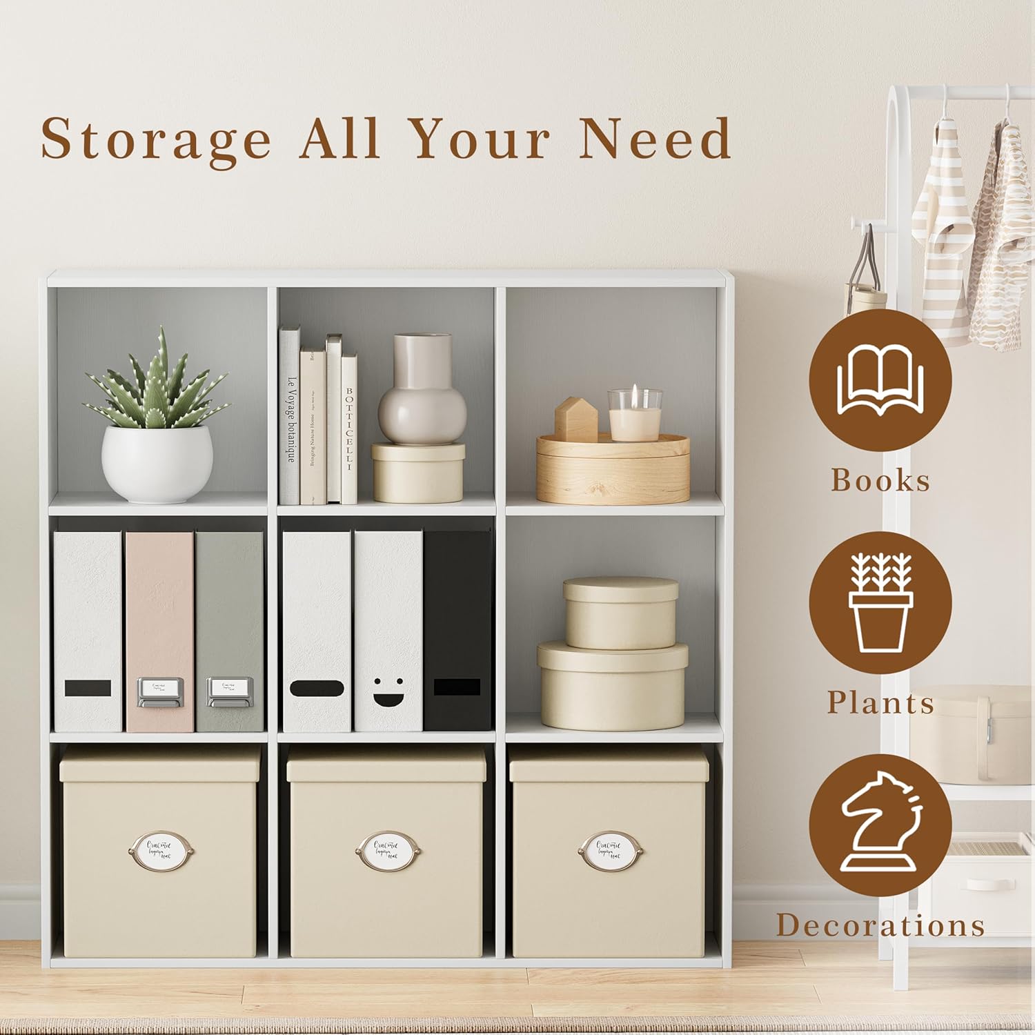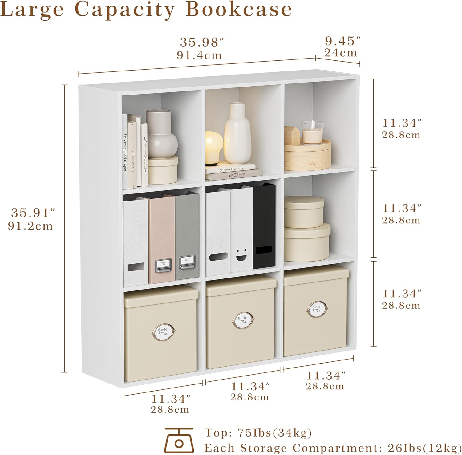 Wooden Storage Organizer with Closed Back Panel, 11in Cube Shelf Opening, Bookshelf, Display Shelf,Closet Cabinet for Home and Office (Embossed White, 9-Cube 35.98L*9.45W*35.91H)