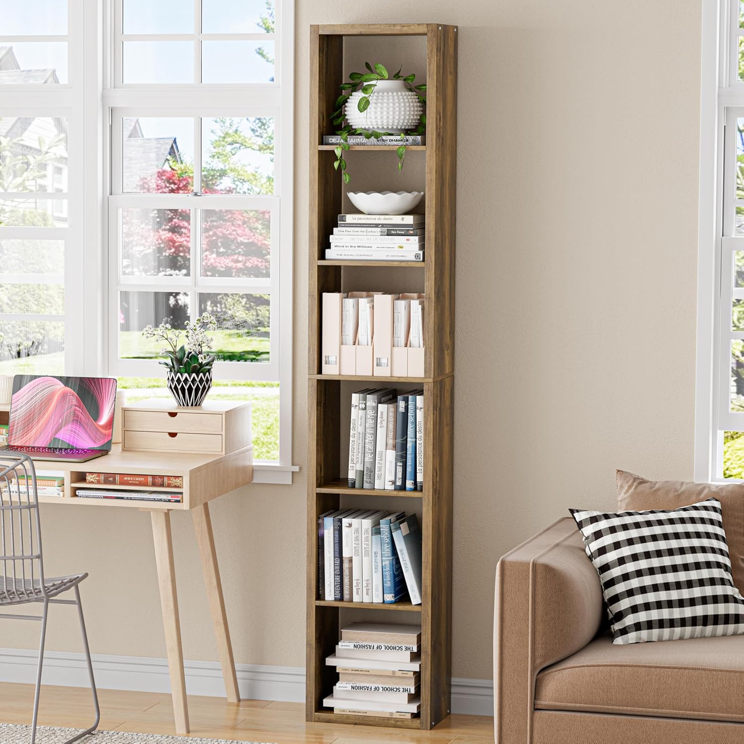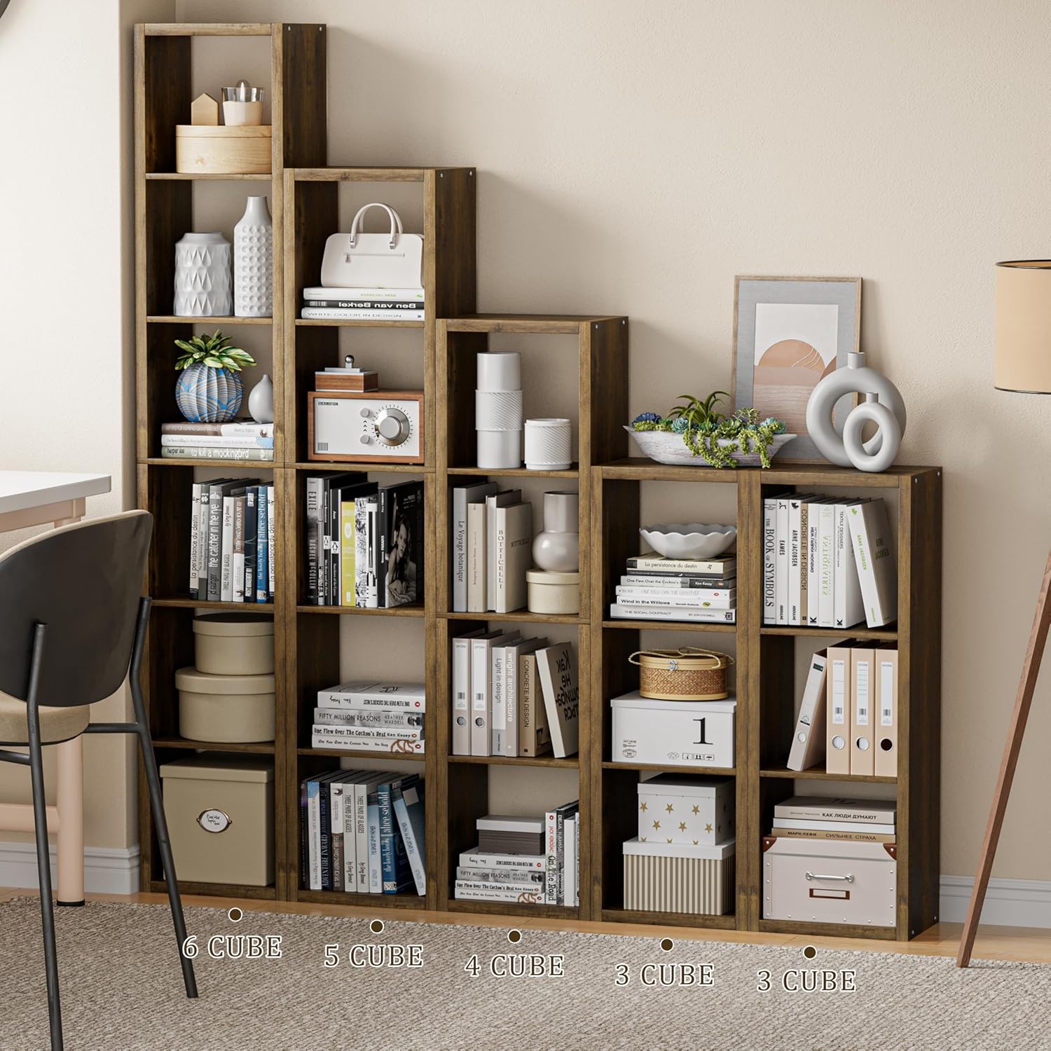 Tall Cube Storage Organizer Bookcase, 6 Tier 11 inch Open Back Cubical Shelf with Thickened Border, Display Bookshelf for Living Room, Home Office, Sturdy Room (Brown, 6 Cube,Vertical)