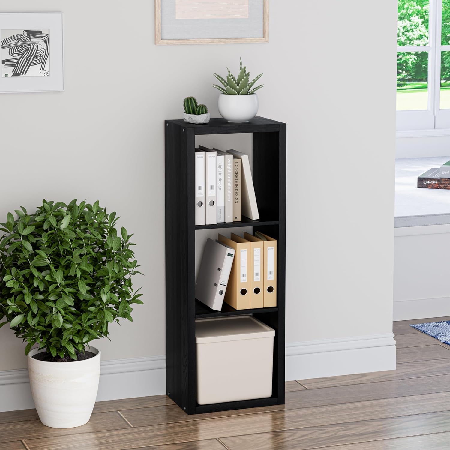 Cube Storage Organizer Bookcase, 3 Tier Decorative 11 inch Open Back Cubical Shelf with Thickened Border, Display Bookshelf for Living Room, Home Office, Sturdy Room (Black, 3 Cube)