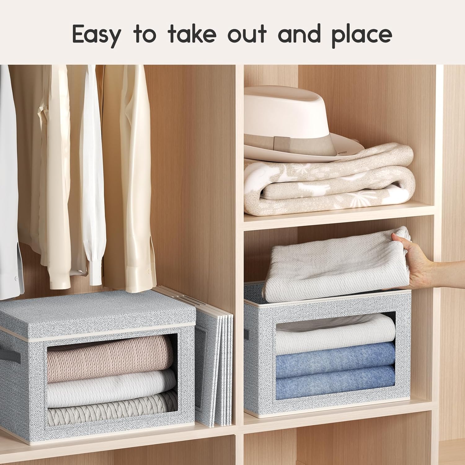 - [Clear Bins with Lids for Easy Visibility] These clear bins with lids feature a transparent window, providing quick visibility of contents. Great for organizing clothing, hats, towels, or office supplies while keeping them secure and dust-free.
