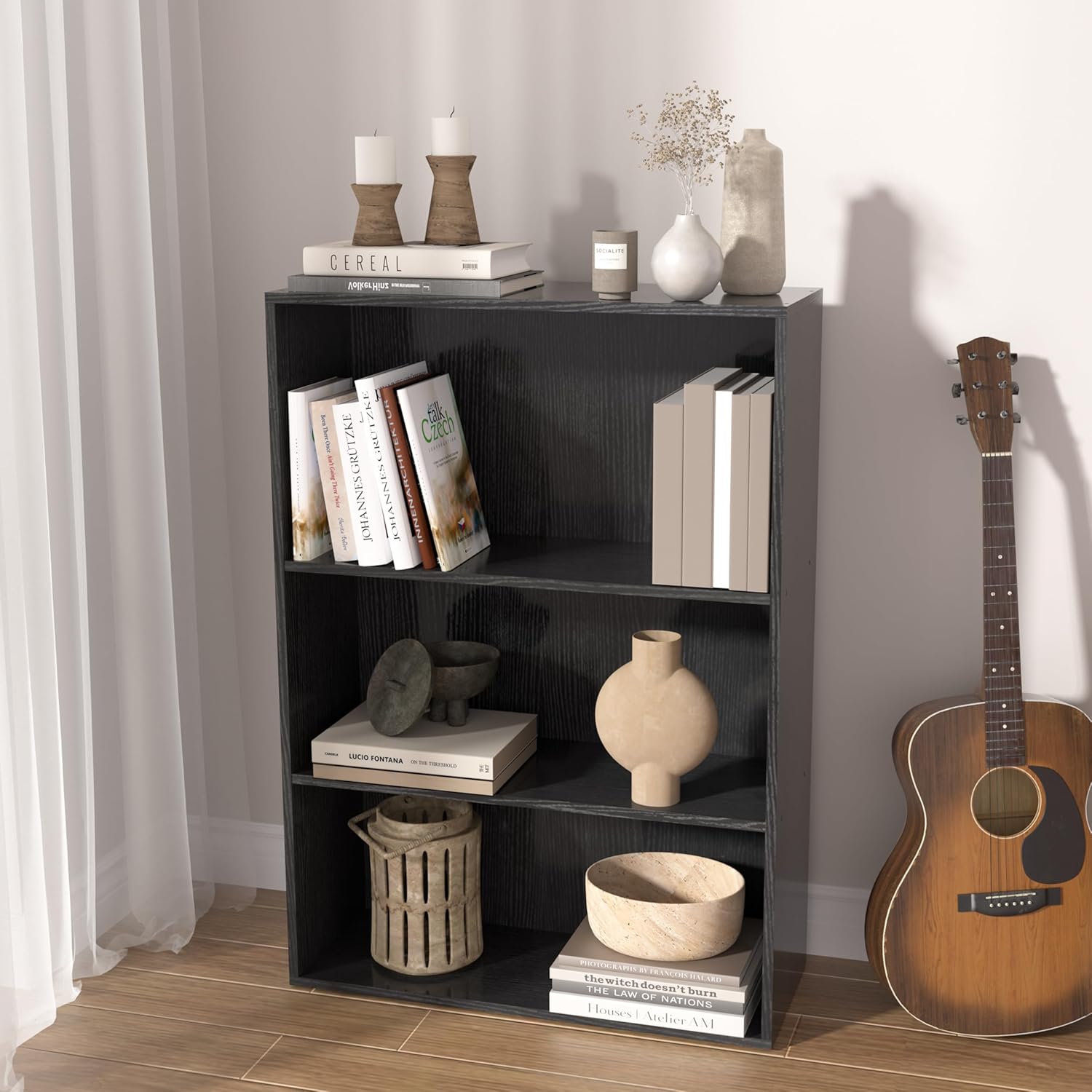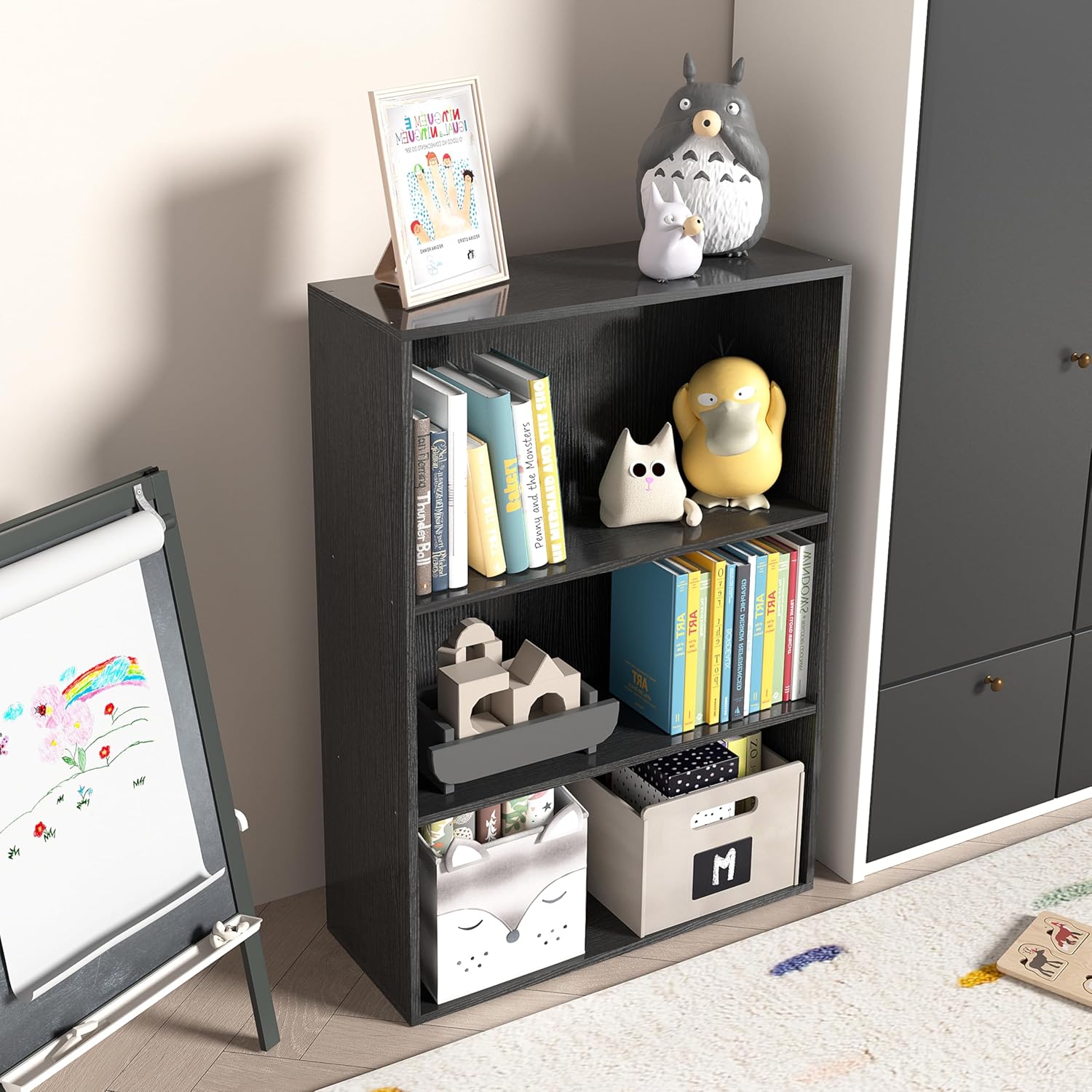 Wooden 3 Cube Storage Organizer,3 Tier Low Bookcase Storage Display Organizer, 33 Inch Versatile Cubes Shelf and Cubby Unit for Any Space (Black, 3 Cube-W(23.6inch)