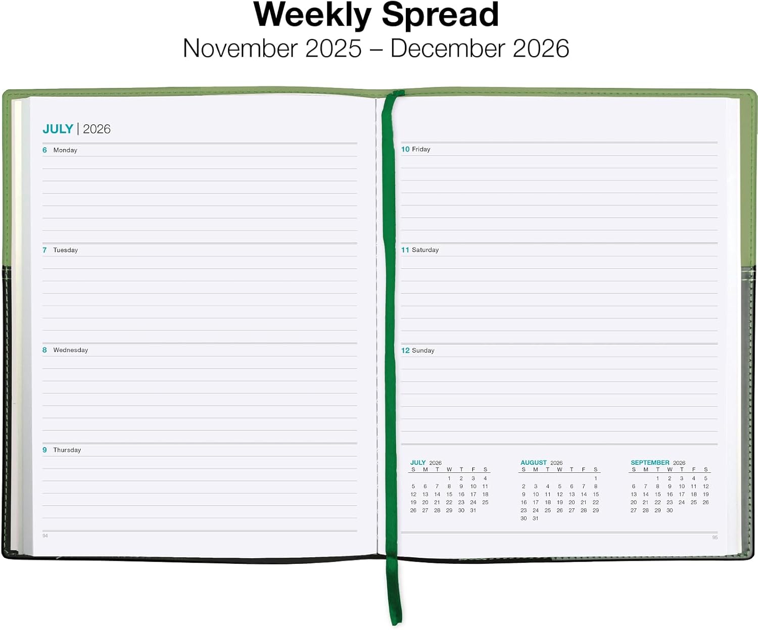 - CLEAN & PROFESSIONAL FORMAT: Notepad on inside front cover, mini monthly calendars for 2026, 2027 & 2028, 16 extra notes pages at the back of planner, 2 pages per week and 2 pages per month.