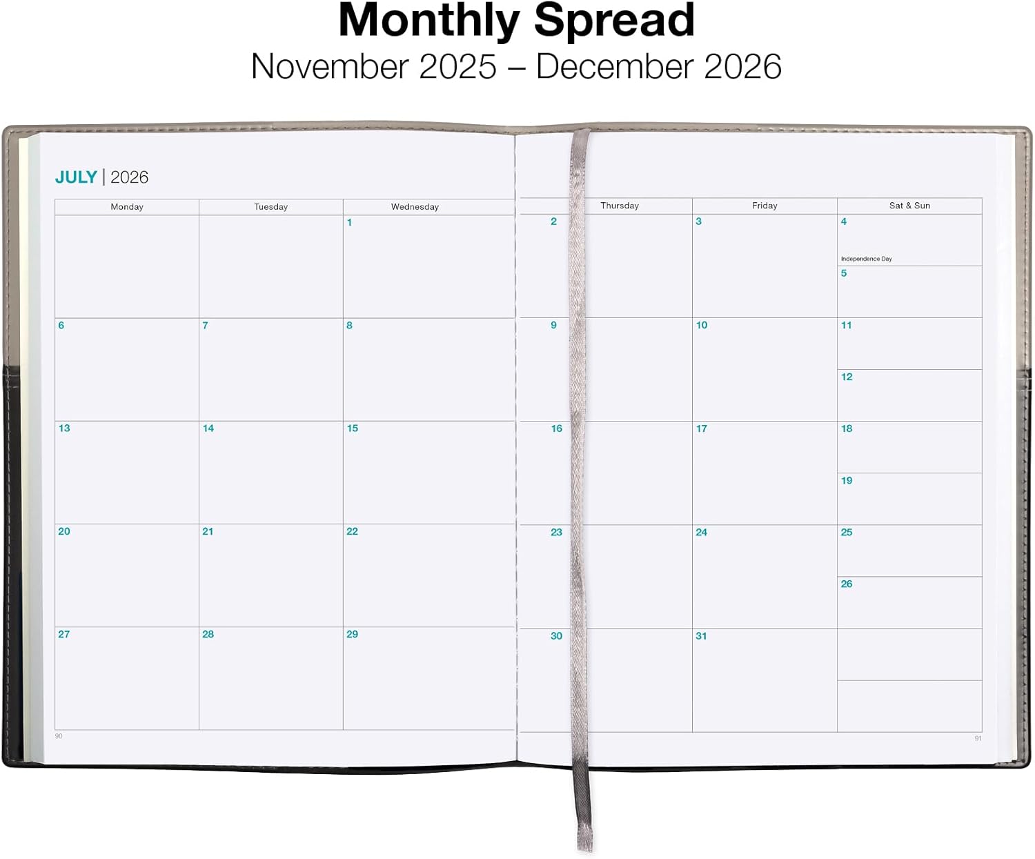 - CLEAN & PROFESSIONAL FORMAT: Notepad on inside front cover, mini monthly calendars for 2026, 2027 & 2028, 16 extra notes pages at the back of planner, 2 pages per week and 2 pages per month.