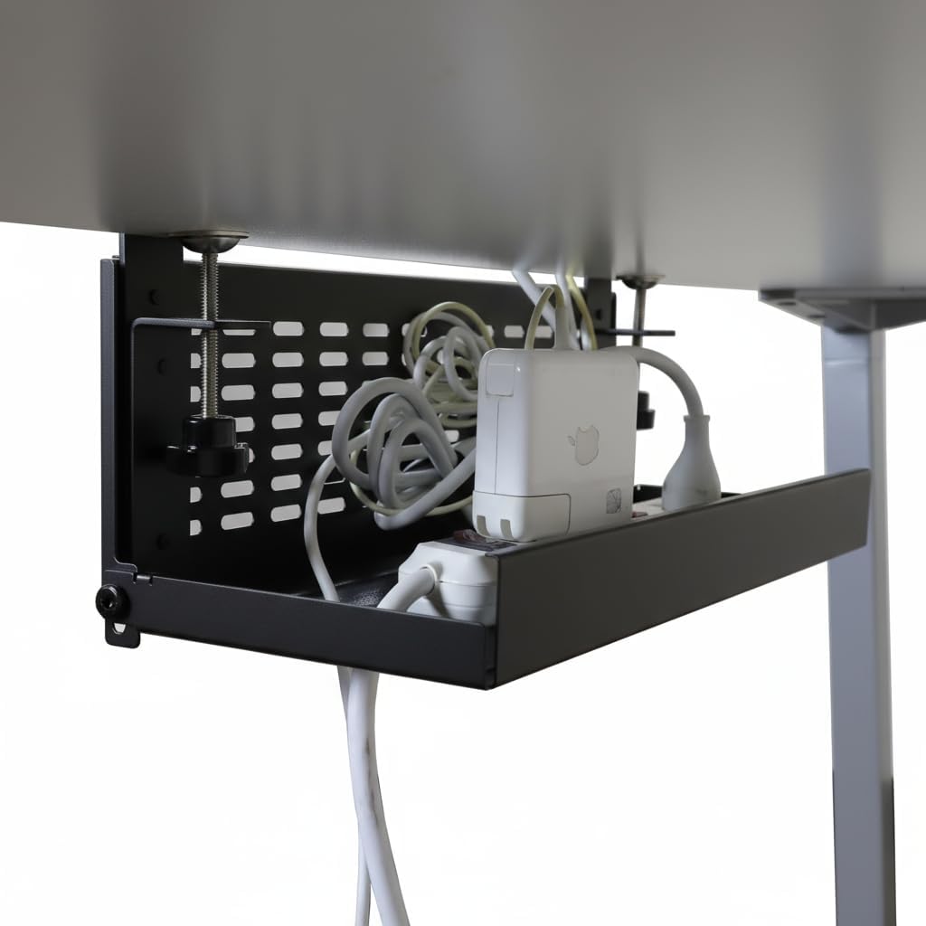 - Universal Clamp-Mount Design – Mounts discreetly under any desktop using adjustable clamps; no drilling or tools required. Fits surfaces up to 3 inches thick. Powder-coated surface blends seamlessly with any workspace aesthetic.