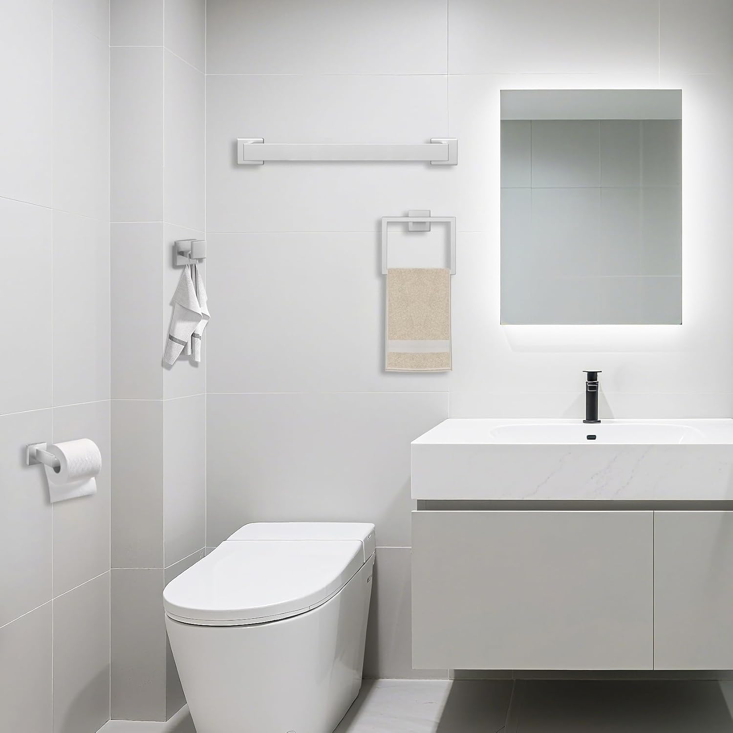 - 【5 Piece Bathroom Hardware】 - Includes 15.7 Inch Towel Bar, Towel Ring, Toilet Paper Holder, 2×Towel Hooks.