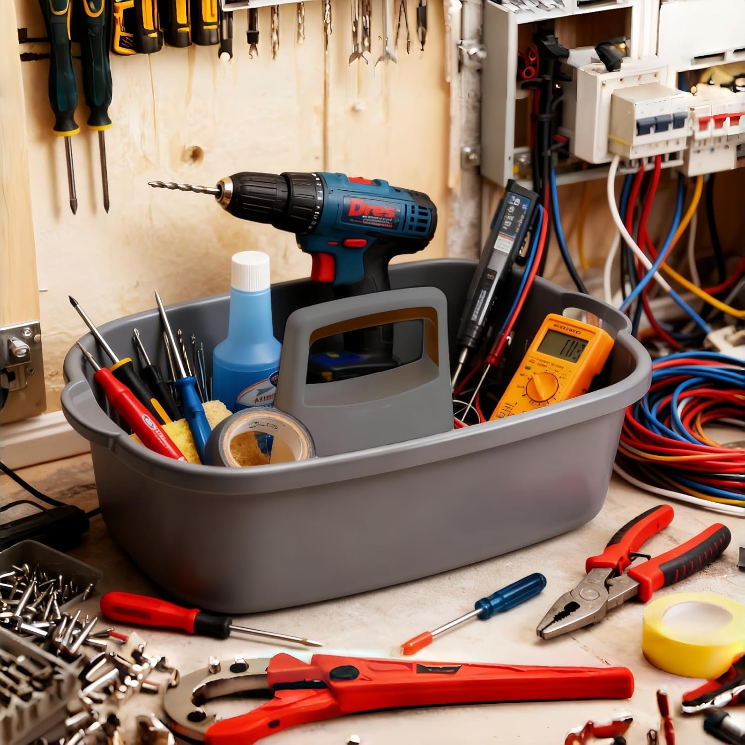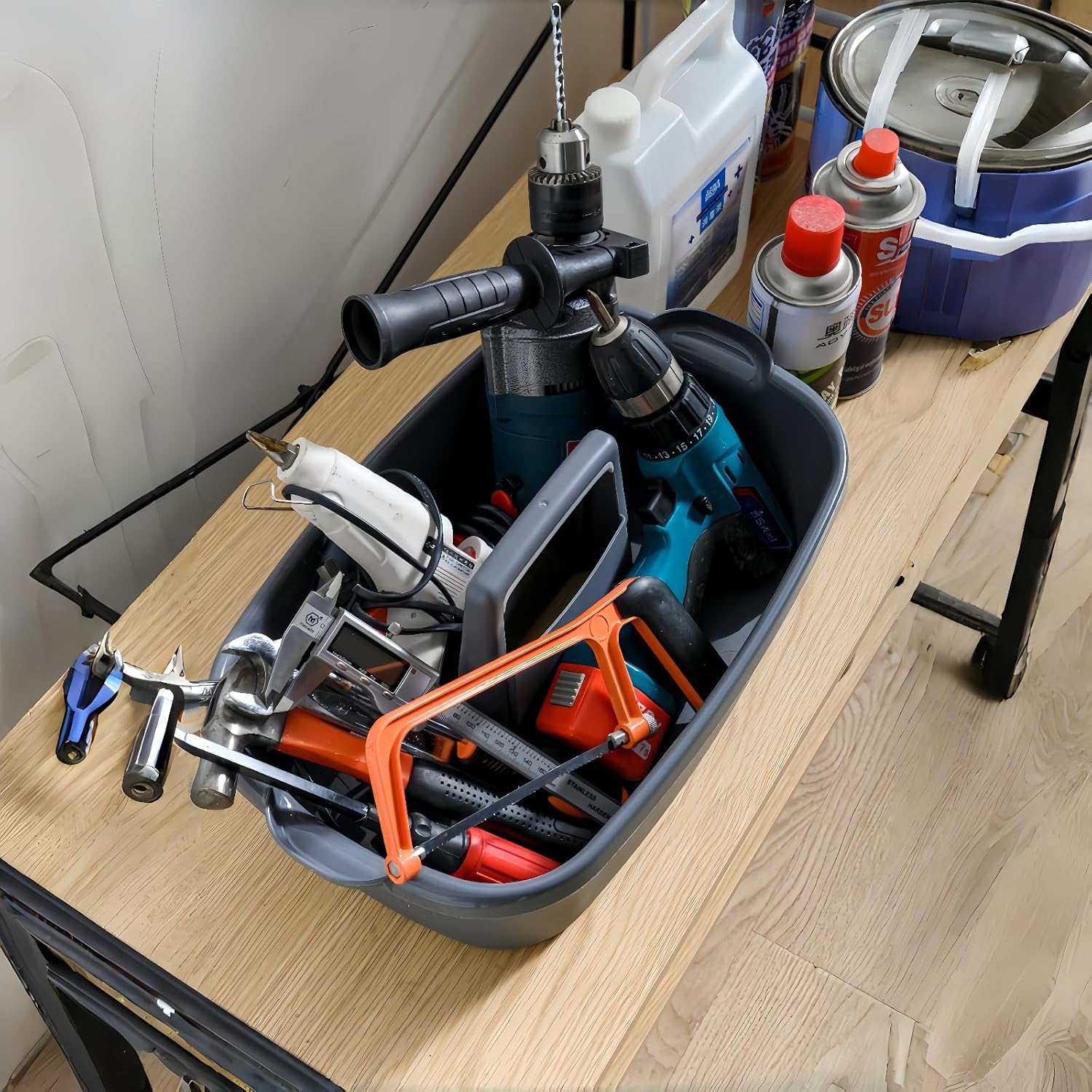 - [ Widely used ] are for organizing cleaning supplies, also work as shower tote basket to holding shampoo, shower gel, towels, clothes, body lotion, etc. or as tools caddy for screws, screwdriver, hammers, wrenches, motor oils, even as ice buckets and garden basket for holding fruit & veggies.