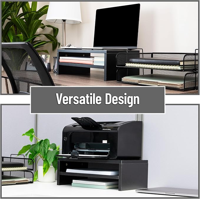 - Ergonomic Monitor Riser: Elevates your screen to eye level for improved posture and reduced neck strain. This riser has an 88 lb capacity.