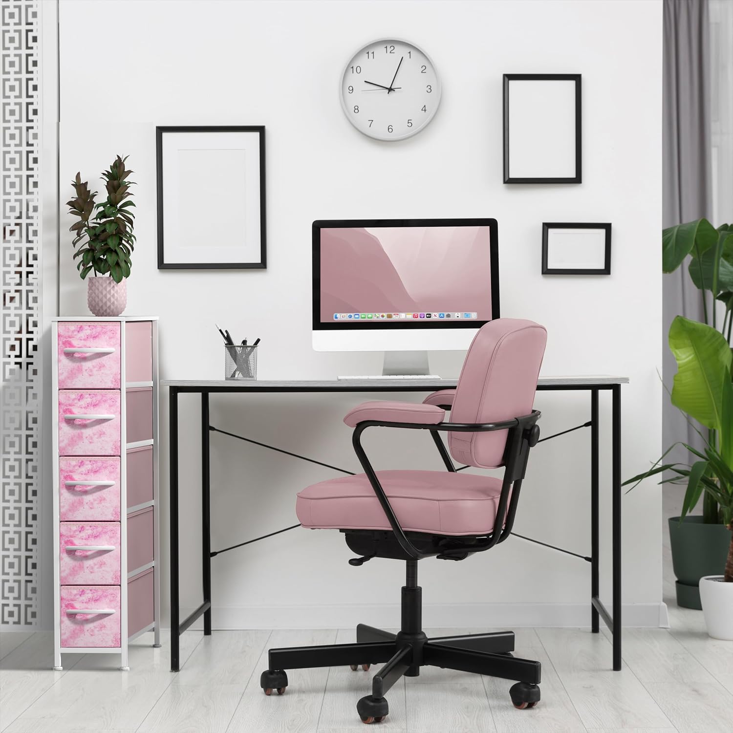 - Narrow 5 Drawer Dresser: This multipurpose bedroom dresser can be used as an end table, side table, or bedside table to store clothes, blankets, linens, lingerie, purses, scarves, socks, accessories, toiletries, makeup, cosmetics, office supplies, games, books, and more
