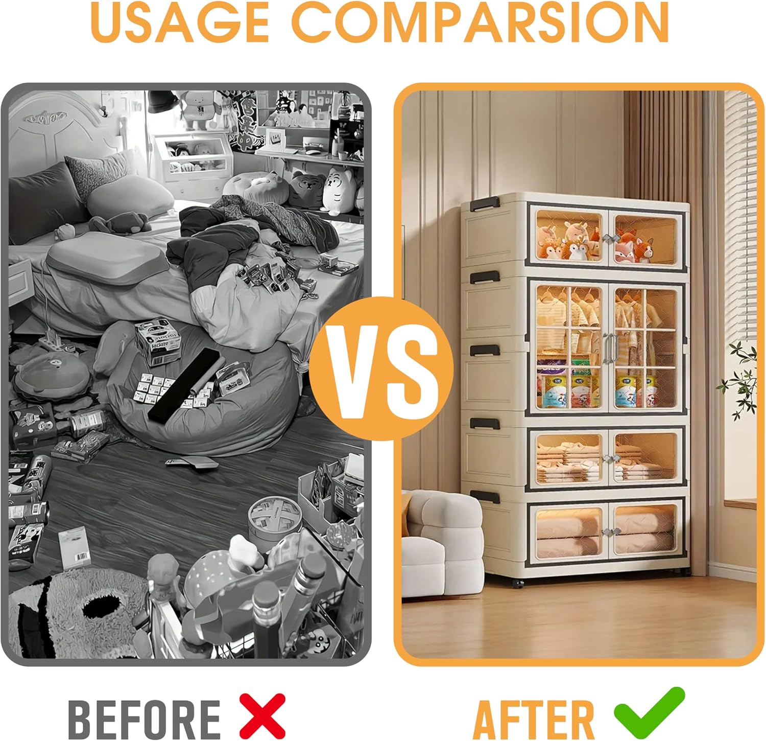 - Space Saving Organizer: Stackable storage bins with wheels can be used as a closet wardrobe, storage shelf, shoe organizer, dresser, bookshelf, and more. It creates a spacious and organized space for your cloakroom, laundry room, fulfilling your long-term storage needs