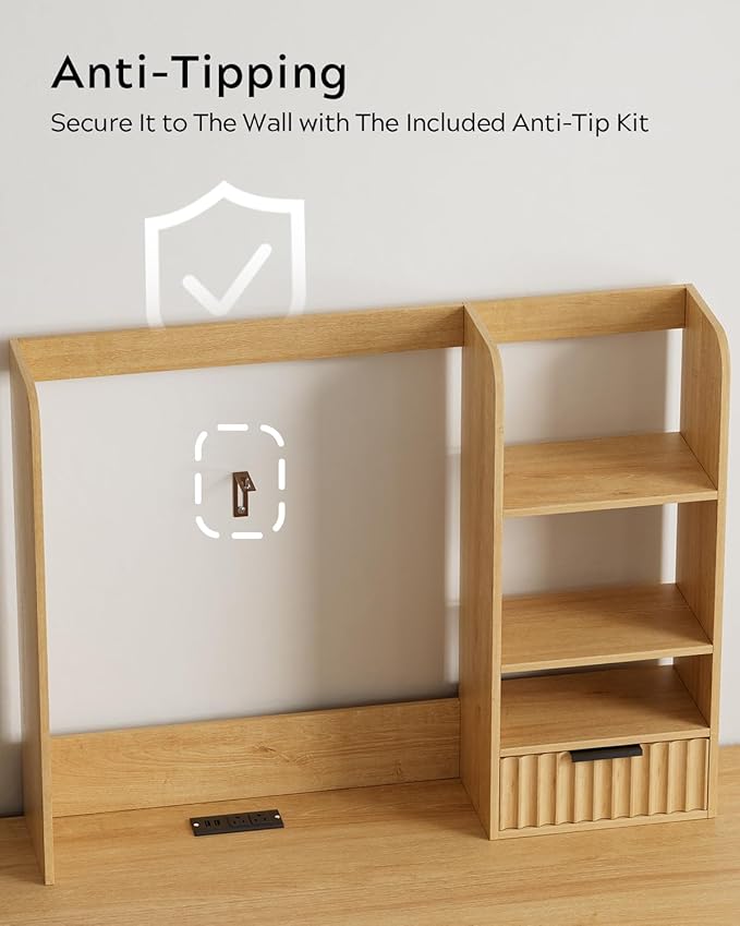 - Easy Assembly & Included Safety Kit: The desk hutch comes with clear, detailed instructions and includes 1 anti-tip kit for straightforward and quick assembly. This ensures added security and peace of mind once installed