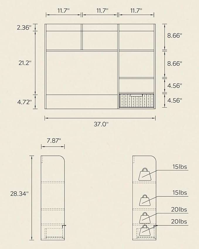 - Product Dimensions : 7.9"D x 28.3"W x 37"H