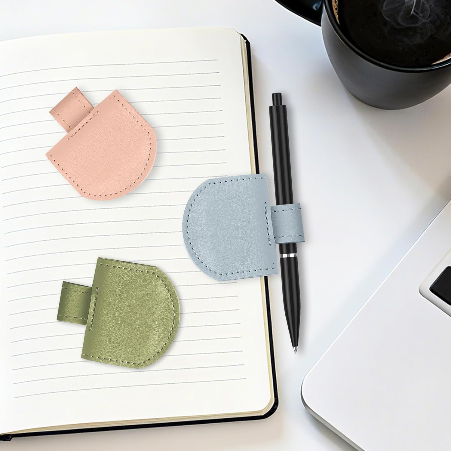 Magnetic Pen Loop Holder, Pencil Holder for Notebooks, Journals, Calendars, PU Leather 3 Pack