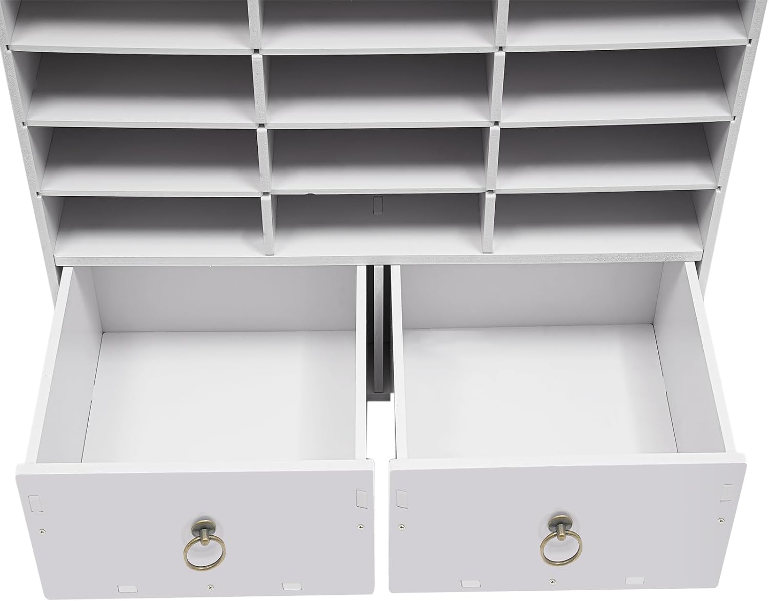 Literature Organizers, Mail Sorter Organizer Adjustable Shelves and 2 Drawers Desktop File Sorter Paper Organizer for Home School Office (White, 24 Slots with 2 Drawers)