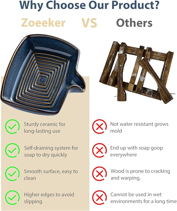 - Effortlessly Clean: The sleek, glossy surface of this soap saver makes cleaning a breeze. This ceramic soap holder is easily rinsed under water or placed in the dishwasher