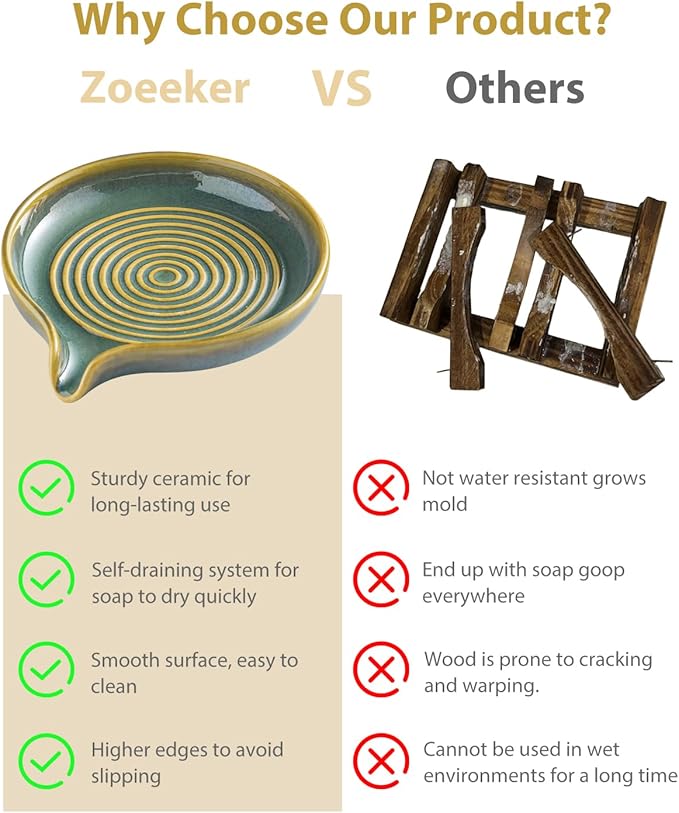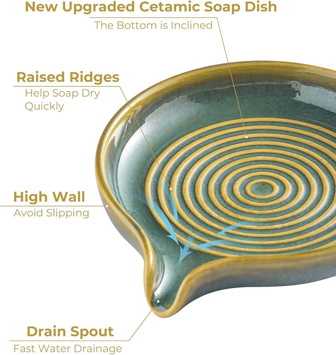 - Say Goodbye to Mushy Soap: Tired of soggy, dissolving soap bars? Our ceramic soap dish features a angled design that ensures complete drainage, keeping your soap dry and lasting longer.