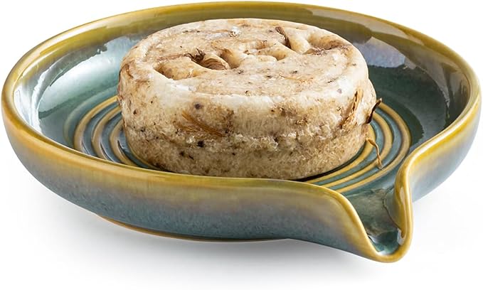 - Sleek, Spiral Design: This ceramic soap holder features a space-saving spiral center, expertly designed as an elegant and functional holder for your bar soap. It's the stylish upgrade your sink deserves.