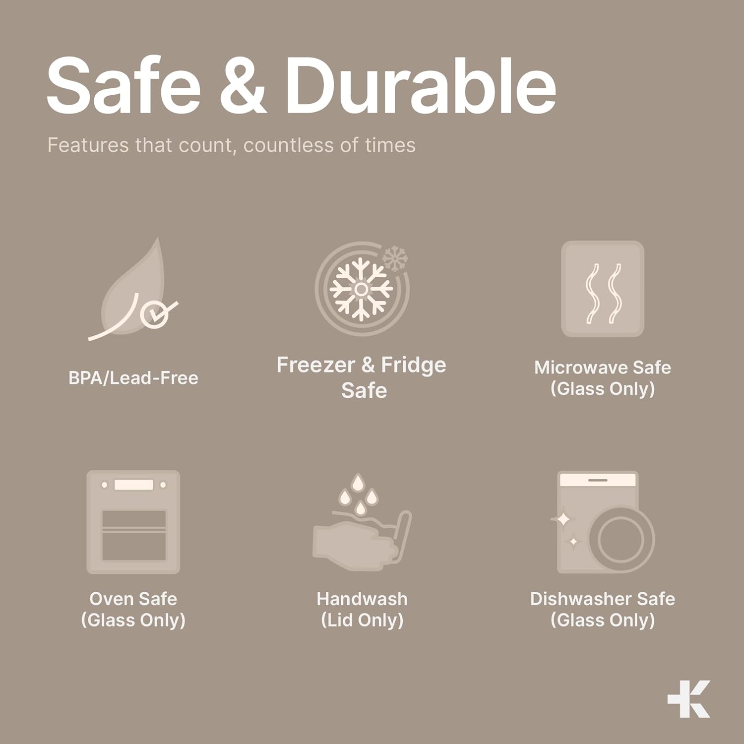 - FROM FREEZER TO OVEN – Designed for convenience, these glass food storage containers can safely move from freezer to microwave (lids off), then straight to your table. They handle temperature extremes with ease, making meal storage, and serving seamless.