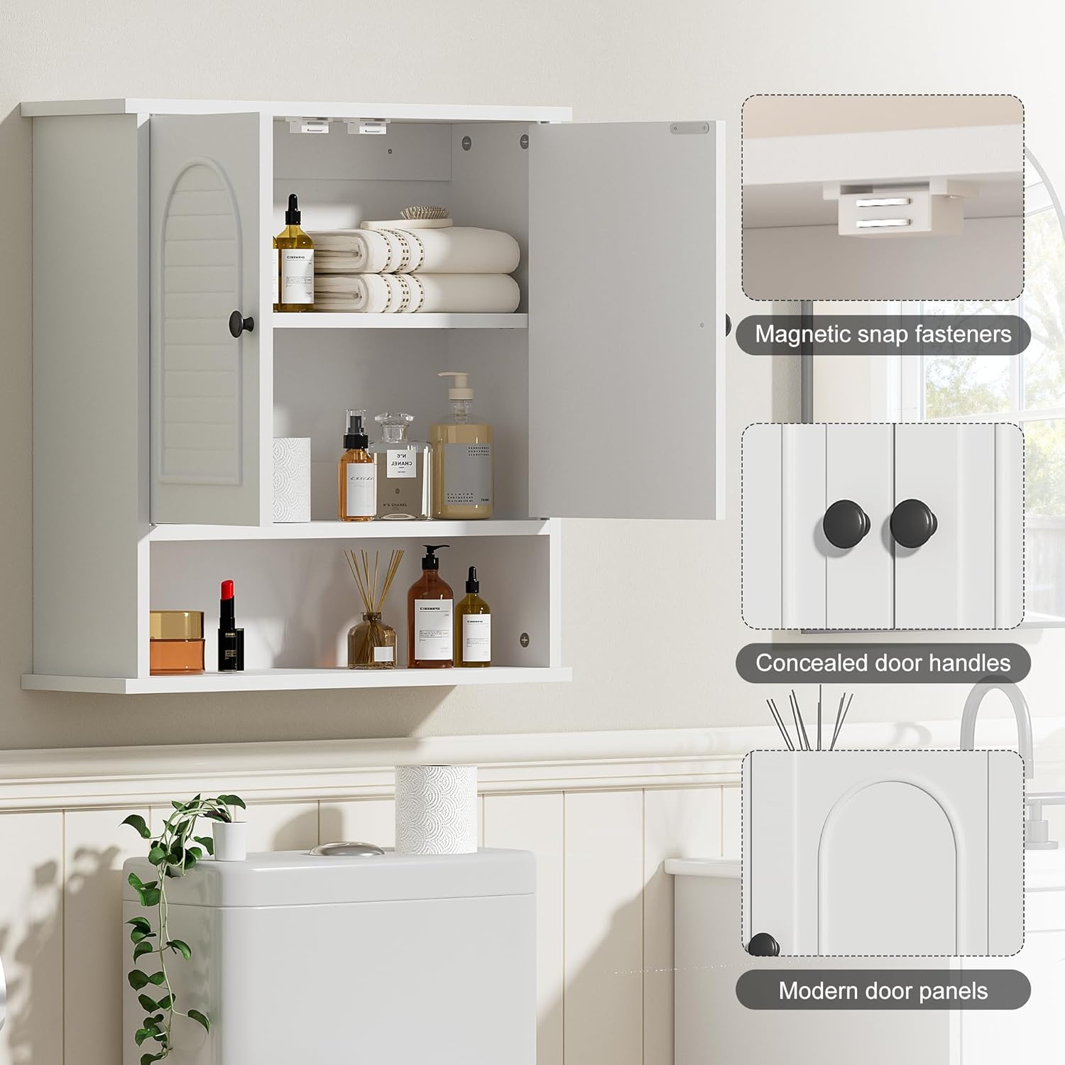 Medicine Cabinet for Bathroom,2 Doors White Bathroom Wall Cabinet with Arched,Over Toilet Storage Cabinet for Laundry Room/Kitchen/Living Room,Surface Mount Medicine Cabinets 23x24