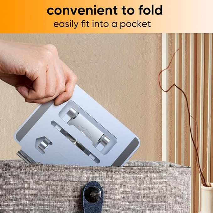 - [Foldable Portable Design & Creates Organized Workspace Anywhere] This portable laptop stand folds compactly for easy storage in backpacks. Perfect for remote workers and students to maintain tidy setups in cafes, libraries or home offices.