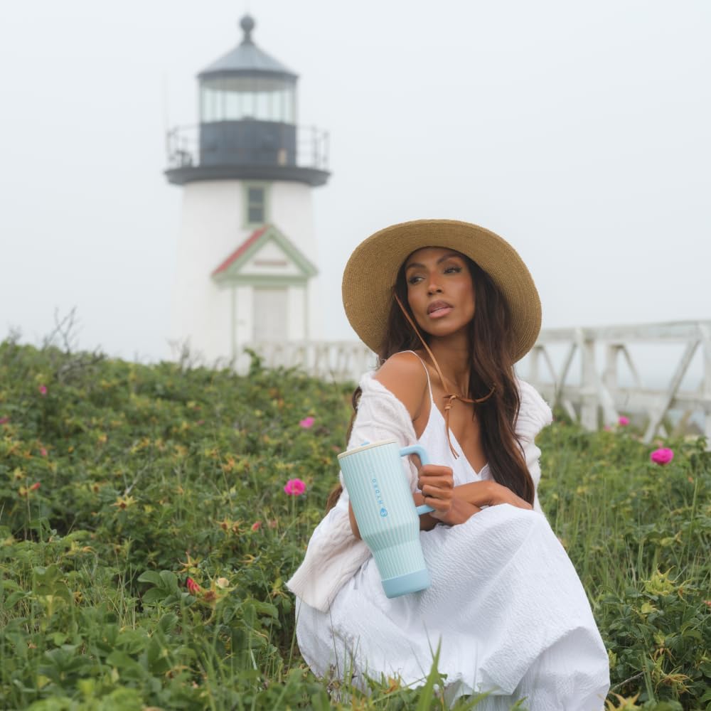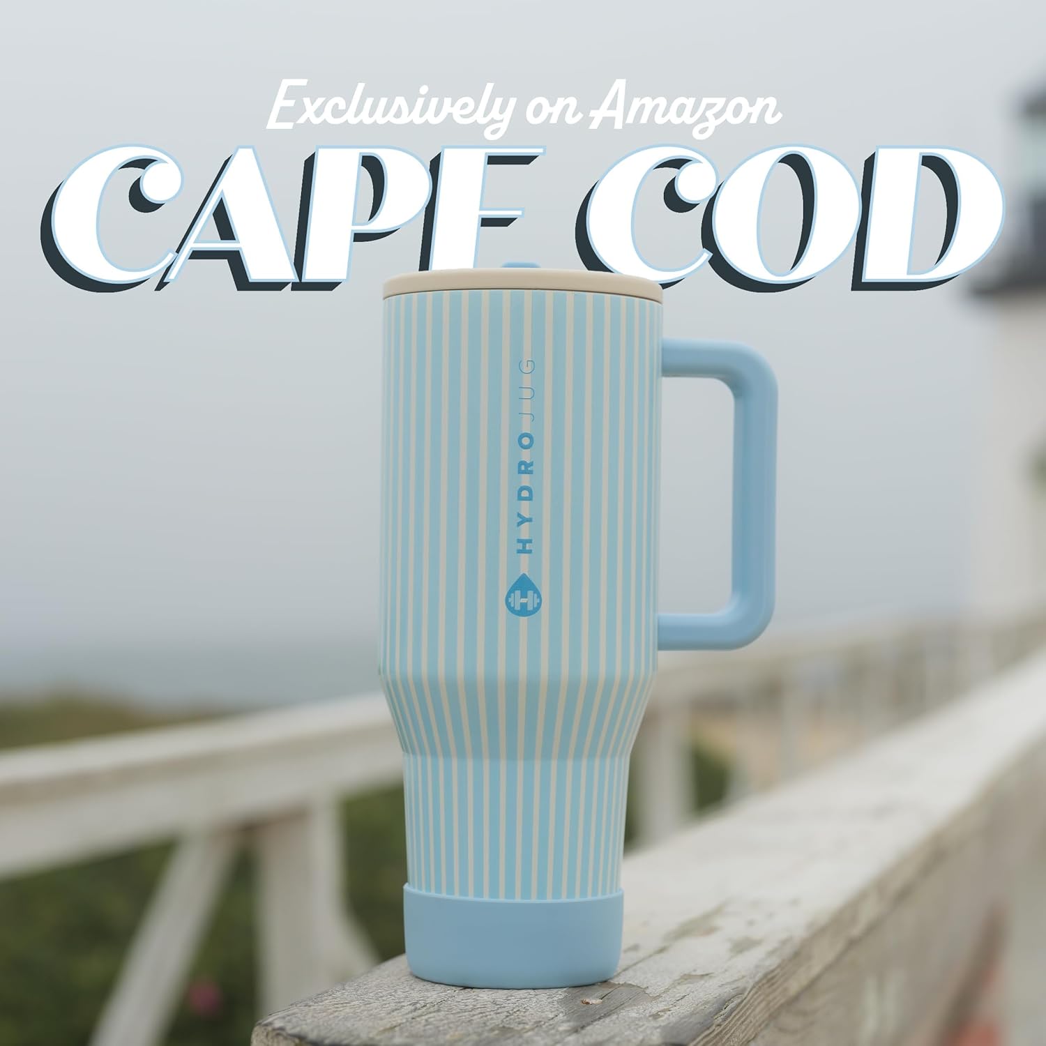 HydroJug Traveler - 32 oz Water Bottle with Handle & Flip Straw - Fits in Cup Holder, Leak Resistant Tumbler-Reusable Insulated Stainless Steel & Rubber Base - Gifts for Women & Men, Cape Cod