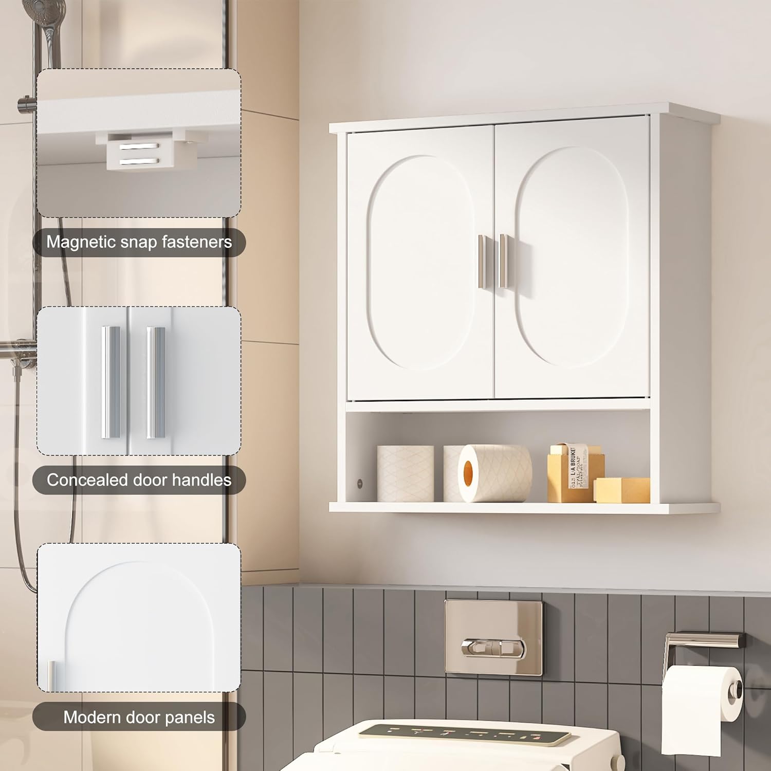 Medicine Cabinet for Bathroom,2 Doors White Bathroom Wall Cabinet with Oval,Over Toilet Storage Cabinet for Laundry Room/Kitchen/Living Room,Surface Mount Medicine Cabinets 23x24