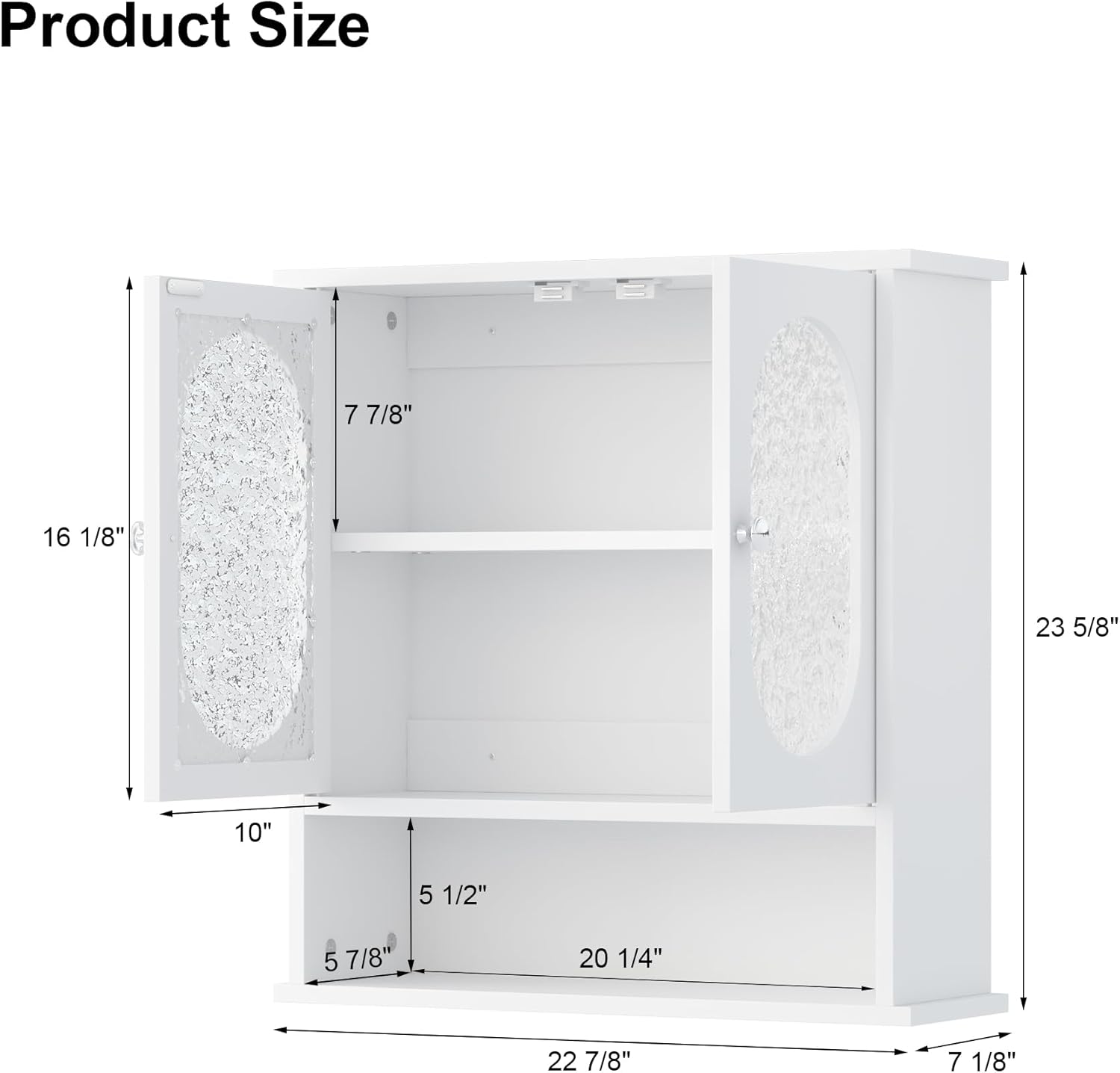 Medicine Cabinet for Bathroom,2 Acrylic Doors White Oval Bathroom Wall Cabinet,Over Toilet Storage Cabinet for Laundry Room/Kitchen/Living Room,Surface Mount Medicine Cabinets 23x24