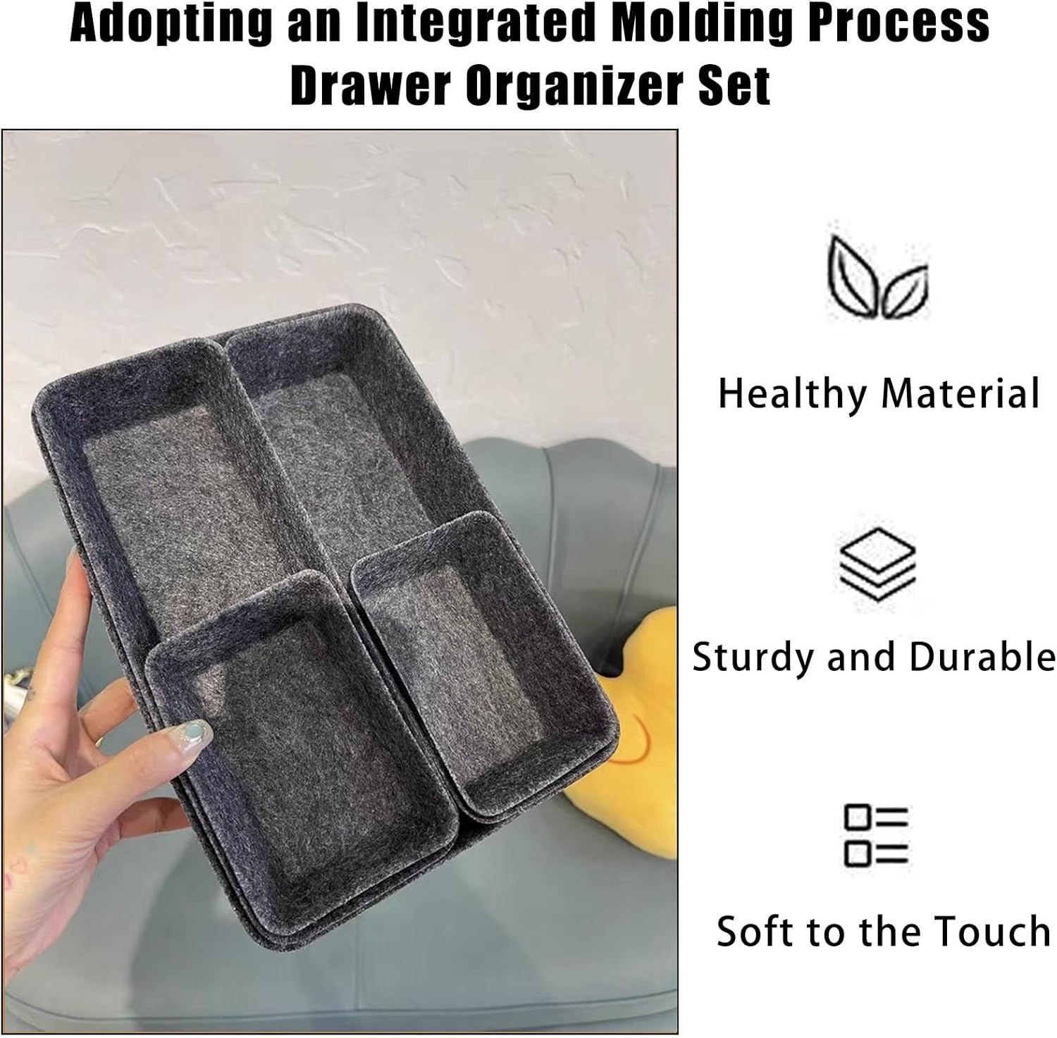 - 【Premium Felt Material】Crafted from thick, durable felt fabric, these drawer organizers are soft to the touch, eco-friendly, and noise-reducing. The high-quality construction prevents scratches on your drawers and keeps small items neatly in place.