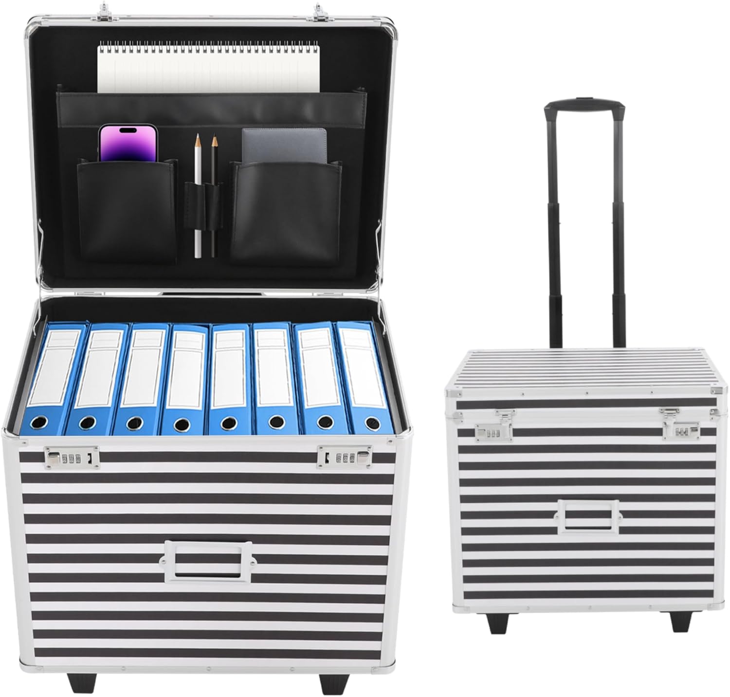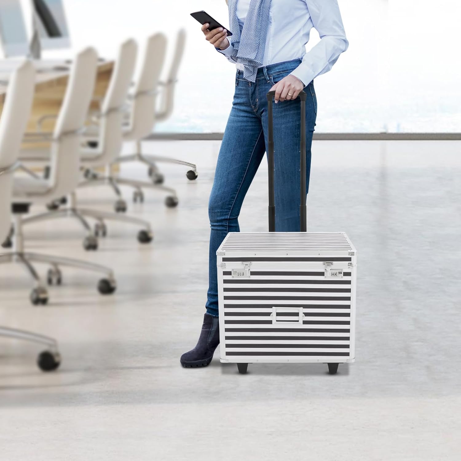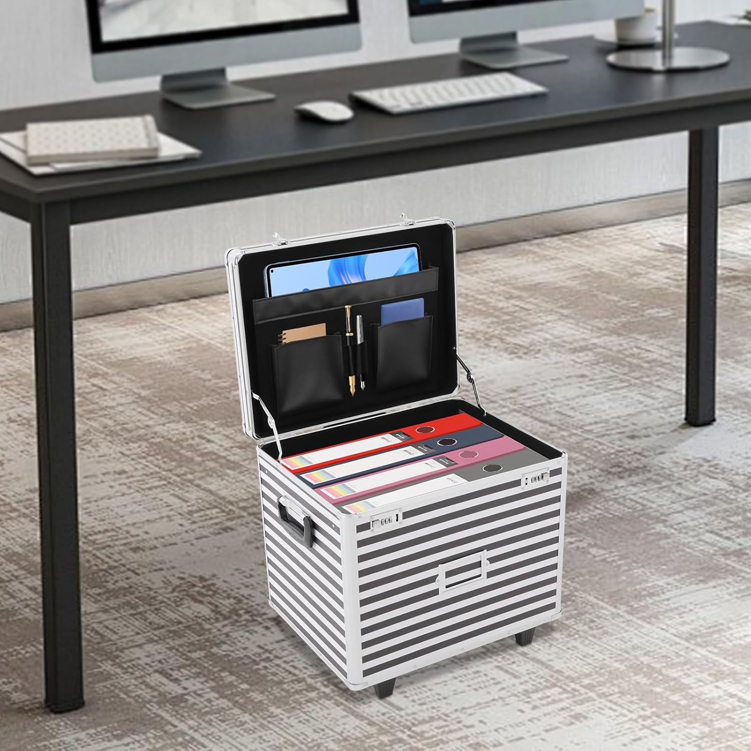 Rolling Cart for Teachers, Rolling File Cart with Hanging Folders, Portable File Box with Handle, Aluminum Alloy, Passcode Lock, Striped Pattern
