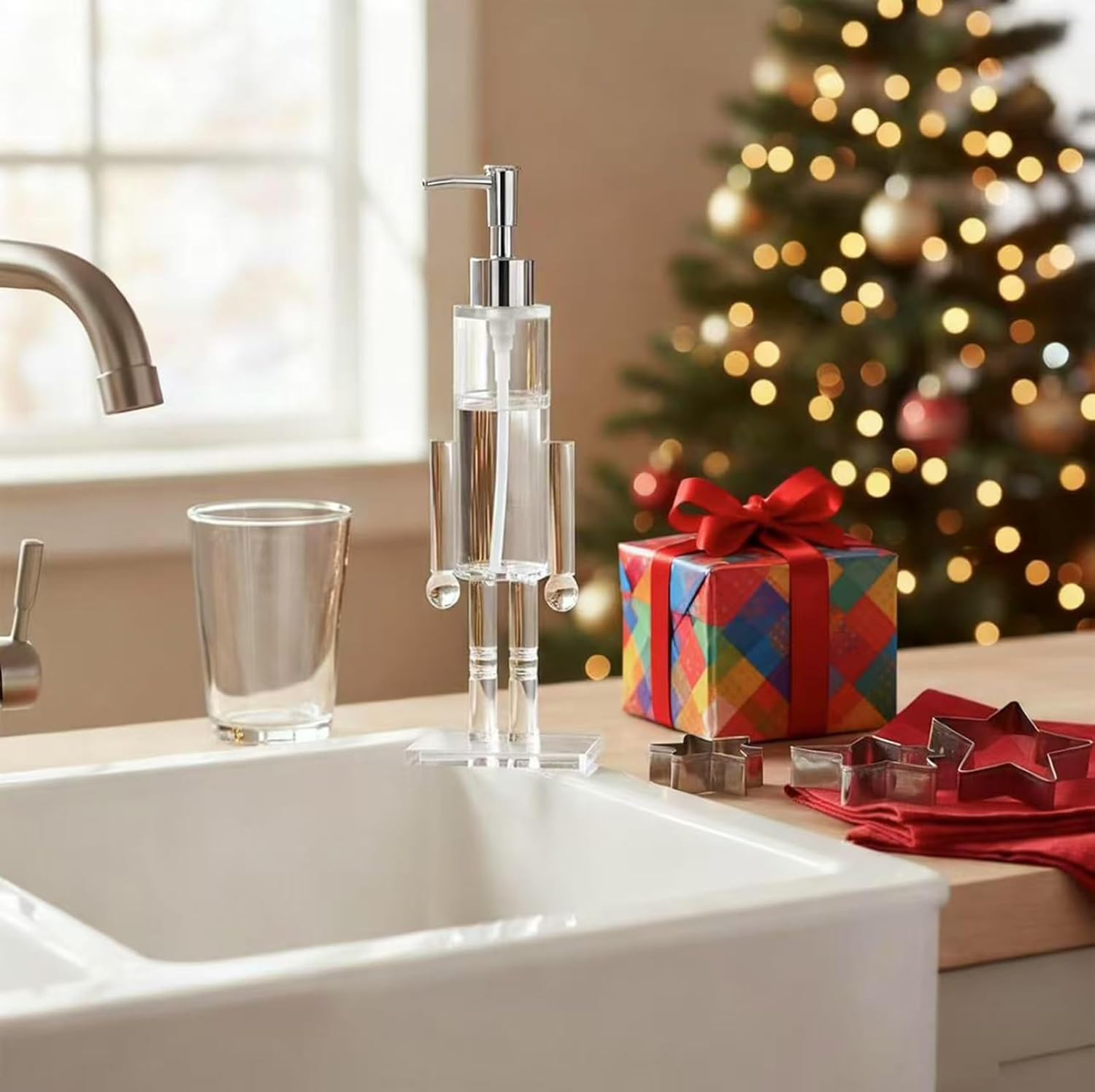 - HOLIDAY GIFT READY: A clear nutcracker soap dispenser that doubles as festive décor—perfect for Christmas, hostess, or housewarming gifts.